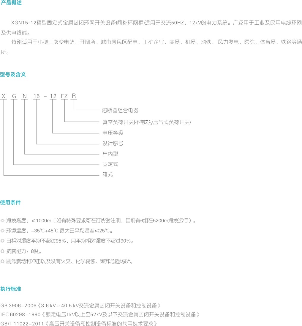 XGN15-12箱型固定式金屬封閉環網開關設備